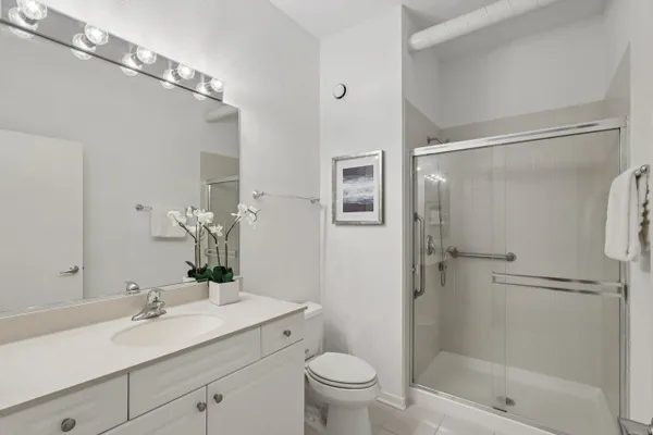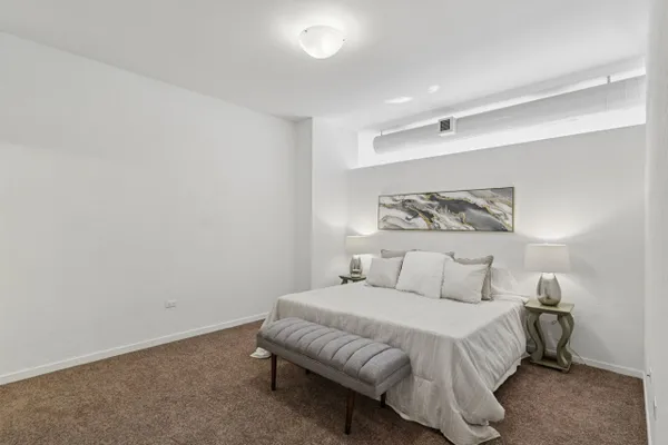 Rare Loft Offering in Sherman Plaza! Experience urban sophistication in one of the few true loft-style residences at Sherman Plaza. This south-facing unit features soaring 10-foot ceilings, exposed ductwork, and concrete walls that create an effortlessly cool, contemporary vibe. The spacious living and dining area is bathed in natural light from a dramatic wall of windows overlooking downtown Evanston. The open kitchen features white cabinetry and stainless steel appliances, all within this modern, all-electric building. The primary suite impresses with its lofty architectural details, high ceilings, and open transom design. It is adjoined with primary bath for comfort and convenience and a huge walk in closet. A second bedroom, hall bath, and side-by-side laundry complete the layout. Garage #612, storage 4-22 on your floor. Sherman Plaza remains one of Evanston's premier addresses-just steps from the lake, shops, restaurants, and train lines. Residents enjoy 24-hour door staff, a sun deck, and a stylish party room (fl 3) Target and Life Time Fitness are right in the building for ultimate convenience.